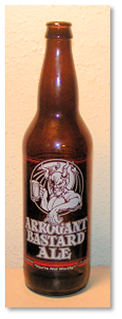 Tonight’s beer … um, I’m going to have to start rating the labels as well as the beers. A good label will sell a beer at least once. This one sold me: Arrogant Bastard Ale. Underneath it reads “You’re not worthy.”