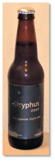 Another winner of the 2006 American Homebrew Contest, this recipe is the creation of Don Oliver who hails from my old home state of California. According to the label, he says this is a “full-bodied, heavy ale good for a winter night by the fire.” Yes indeed, it is, but I could also imagine drinking it after dinner on the back deck of a boat, or even cuddled up with my sweetheart during a good movie. The 10.6% alcohol by volume might even facilitate a romantic mood.